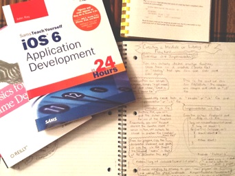 I am teaching myself how to design apps for the IPAD and IPHONE. Thanks to Stanford University’s online lecture series, coupled with lots of youtube videos hosted by 12 year olds, I am finding myself “back in school” so to speak as I muddle through the process of being an adult student. The IOS 6 App Development Book has been a