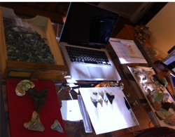 My newest series, Fossiliferous, contains sculptures with collections of fossils dating well into the Cenozoic Era of geologic history. Each provides a biological collection of bones, teeth, and shells of extant as well as extinct species. Individual fossils were collected by me from various sites along the coastal rivers and estuaries of Virginia, North Carolina, and Maryland. Each piece represents countless collecting and foraging trips rich in memories and history. Final pieces are museum quality assemblages mounted into a natural sandstone substrate. Fossils sites include the Potomac , Rappahannock, James, York, Meherrin, Pamunkey and Tar Rivers as well as sites on the Chesapeake Bay.